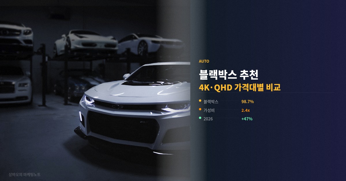 결론부터 말하면요, 2026년 블랙박스 시장은 4K 해상도가 보급형까지 내려온 게 가장 큰 변화예요. 작년까지만 해도 30만 원 이상이던 4K 모델이 올해는 18만 원대부터 나오고 있거든요. 거기다 AI 주차 감시, 클라우드 연동 같은 기능도 중급기에 탑재되기 시작했어요.