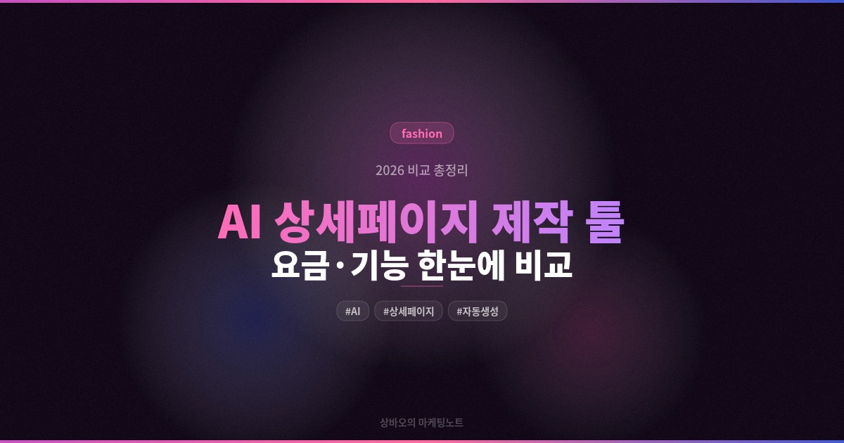 2026년 기준 AI 상세페이지 제작 툴 7개의 핵심 기능, 요금제, 패션 특화 여부를 한눈에 비교 정리했습니다.