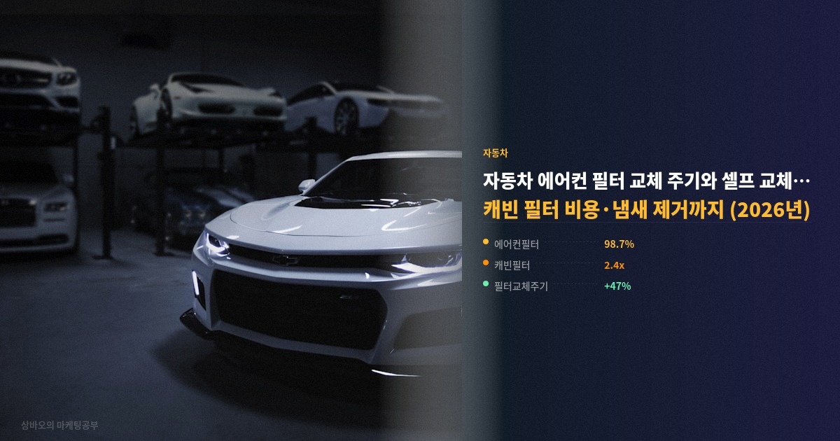 에어컨 필터는 자동차 소모품 중 가장 교체가 쉽고, 비용 대비 체감 효과가 큰 부품입니다. 공구 없이 5분, 비용 1만 원이면 되는 작업을 정비소에 맡기며 3~5만 원을 쓸 필요가 없습니다.