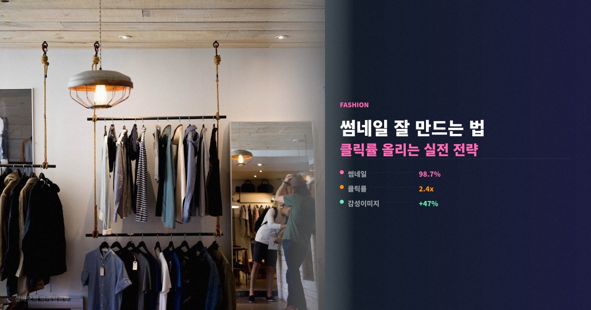 쇼핑몰 썸네일 잘 만드는 법을 모르면 좋은 상품도 목록에 묻힌다. 소비자가 상품 리스트에서 클릭을 결정하는 시간은 평균 0.3초, 그 짧은 순간을 이미지 하나가 온전히 책임지는 구조거든요. 실제로 같은 상품이라도 썸네일 품질에 따라 클릭률 차이가 수 배까지 벌어진다는 게 이커머스 업계의 공통된 이야기다.