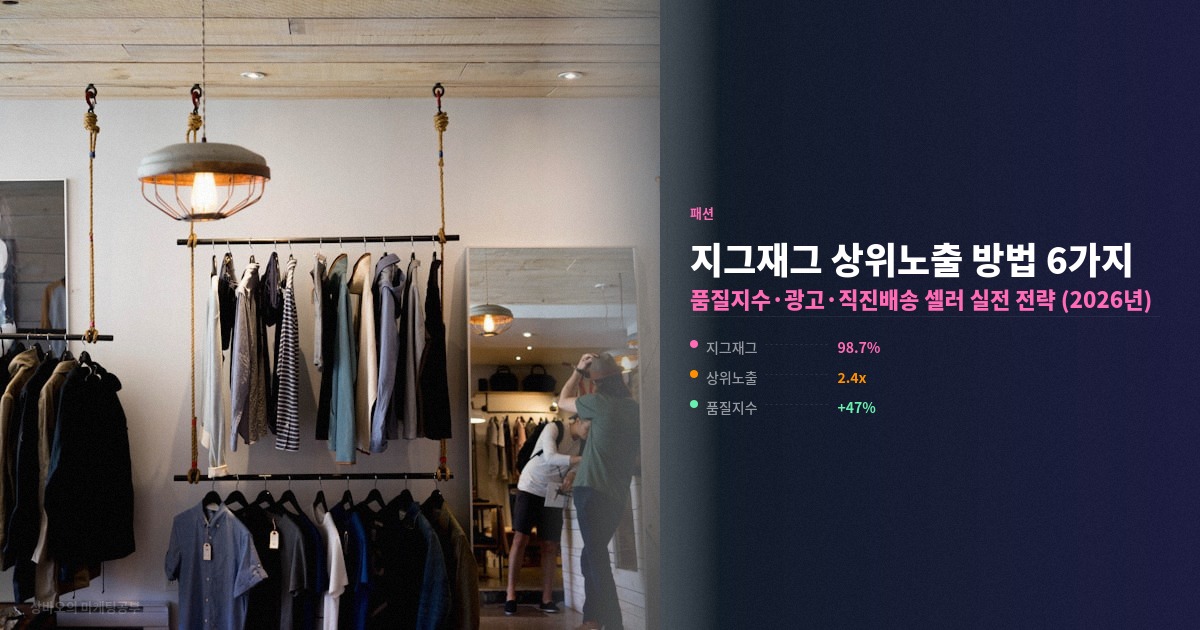 이번 글에서는 지그재그 알고리즘의 작동 원리, 품질지수 관리법, AI 광고 활용, 직진배송 노출 우대까지 상위노출을 위한 6가지 실전 전략과 에이블리 대비 수수료·정산 비교표를 정리해보겠습니다.